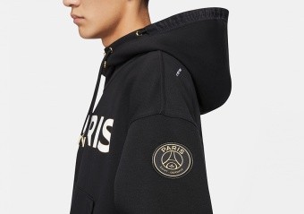 NIKE AIR JORDAN PSG PARIS SAINT-GERMAIN TRAVEL FLEECE HOODIE BLACK